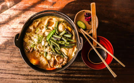 Traditional Japanese Food, Hot Ramen Noodle in Miso Broth Soup with Chashu Braised Pork Belly Topping. Oriental Cuisine, Gourmet, Culinary, Delicacy, Cooking, Fast Food, Nutrition and Culture concept