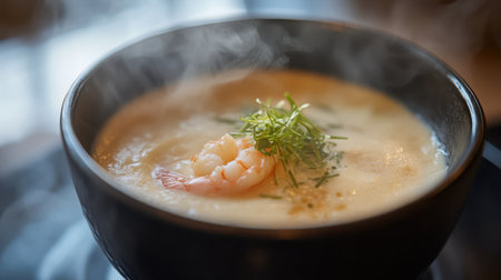 AI Generated. A creamy bowl of abalone porridge with a rich broth