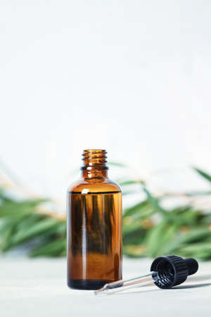 Cosmetic bottle with pipette and medicinal herbs essential oil