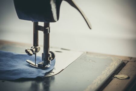 Sewing clothes on a sewing machine close-up. Handmade at home