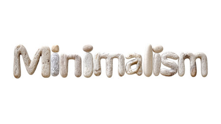 The word Minimalism made of transparent pebbles isolated on a transparent background