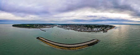 View of the River Orwell from a drone at sunset in Suffolk, UK