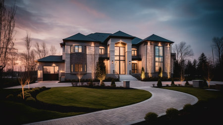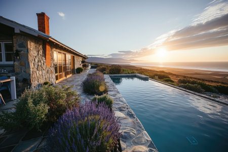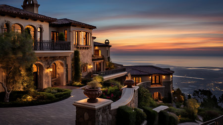 Discover a modern home with breathtaking views at sunset. The elegant design showcases architecture surrounded by serene landscaping, perfect for peaceful living.