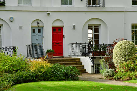 London/UK-1/08/18: pastel-colored terraced houses on White Hart Lane in Barnes. Terrace house is a form of medium-density housing, whereby a row of attached dwellings share sidewalls