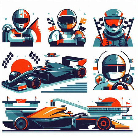 Set of racing car icons, vector illustration in flat design style.