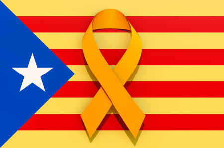 Yellow ribbon on the Catalonian flag. Catalonia independence concept, 3D rendering isolated on white background