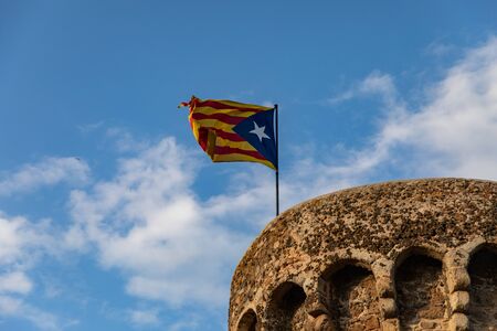 an estelada, the Catalan separatist flag, waving over the blue sky