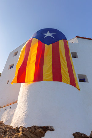 Catalan Flag on a White Building, Cadaques, Spain