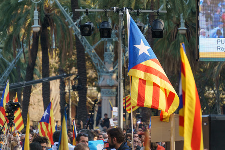 Barcelona, Catalonia, Spain, September 11, 2017: Rally support for independence of Catalunya during the national day
