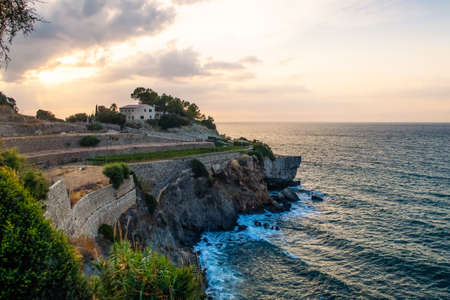 Island scenery, view of historic buildings, seascape panorama Majorca Spain, beautiful coast , Mediterranean Sea, Balearic Islands.