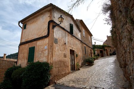 Picturesque stone street in Mallorca island. Bunyola village. Baleares