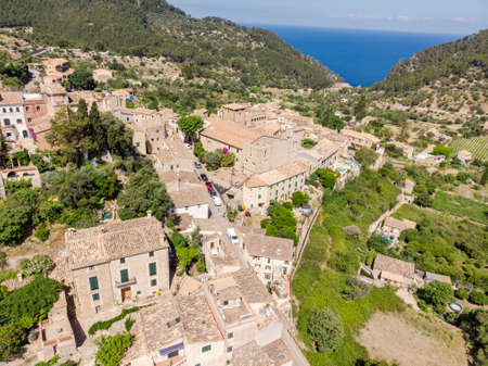 Valldemossa Mallorca or Majorca Spain aerial panorama view historic and authentic spanish mountain village