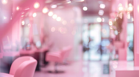 Blurred luxury interior of a beauty salon in pastel pink tones