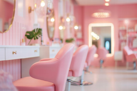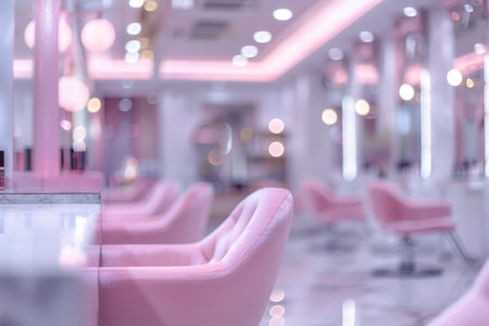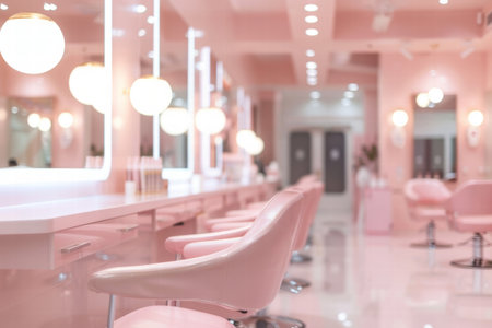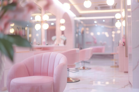 Soft pastel blurred background creating a luxurious beauty salon atmosphere.