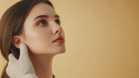 A young woman consults with a cosmetic surgeon, considering procedures while gently touching her face, highlighting her features.