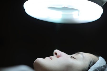female patient Red lips plastic surgery operation bare shoulders studio lifestyle