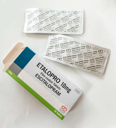Donegal, Ireland - September 27 2023: Antidepressive Escitalopro10mg laying on a table