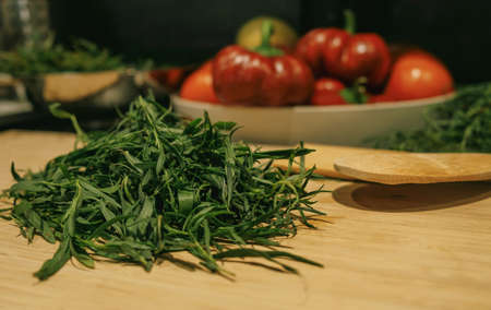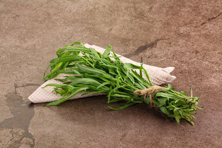 Tarragon herb as a organic salad ingredient on dark wooden table