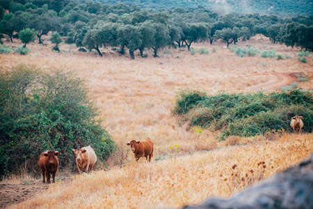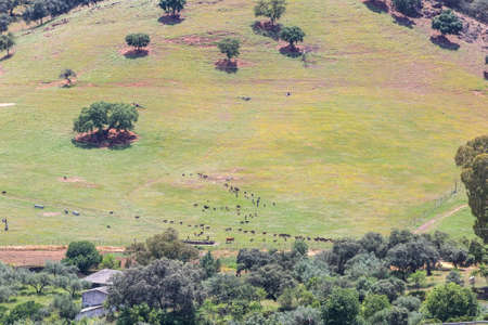Springtime landscape in the Sierra de Huelva. Sierra de Aracena and Picos de Aroche Natural Park, Andalusia, Spain