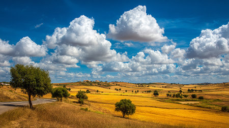 Scenic Portuguese Landscape with Golden Fields and Dynamic Blue Sky