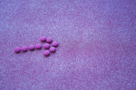 An arrow from pink medicines on the glittery background.