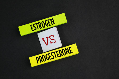 colored paper with the words estrogen vs progesterone. concept of female hormones and menopause