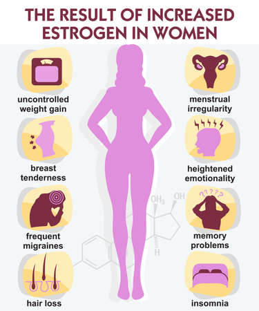 The result increased estrogen in women. Infographic vector. Estrogen hormone levels. Female sex hormone and it s role in human body. Scientific, educational and popular-scientific concept