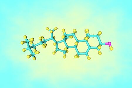 Molecular structure of cholesterol, an organic molecule, a sterol, a type of lipid. We need some cholesterol in our blood to build healthy cells. Scientific background. 3d illustration