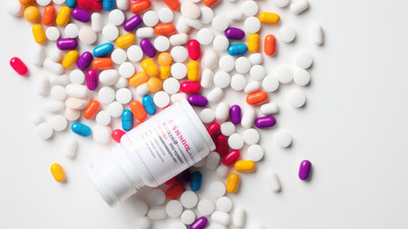 Pills and medical drugs, medicine and supplement for pharmaceutical industry and health care concept