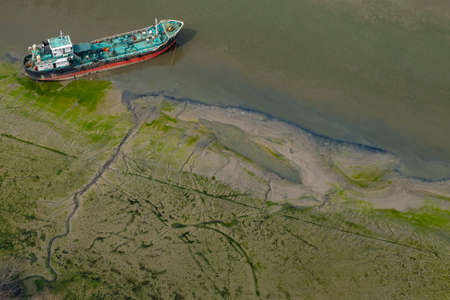 Aerial view of Tongzhou Bay tidal flat in Nantong, Jiangsu, China