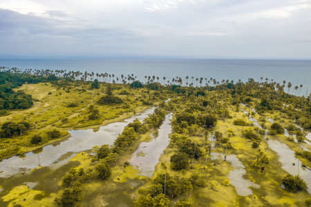 Aerial panoramic mangrove forest view in Siargao island,Philippines. Mangrove landscape