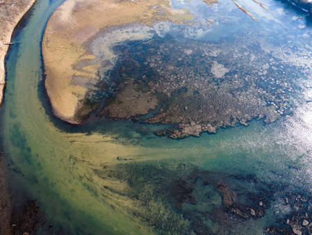 Aerial view of the estuary of the river in the morning