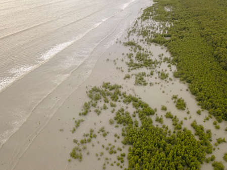 Aerial view gree mangrove nature tropical rainforest to the bay of sea