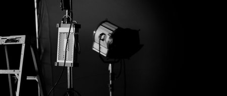 Interior of a photo studio with professional lighting equipment and lighting equipment