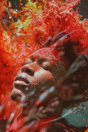 Man Immersed in Vibrant Neon Lights with Digital Reflections.
