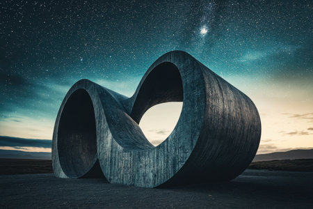 A striking modern sculpture sits against a clear night sky filled with stars, showcasing a unique design.