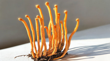 Cordyceps mushroom extra close-up Abstract natural background with fungus Traditional Chinese Medicine Cordyceps militaris