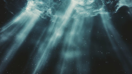 Ethereal underwater light beams in ocean depths for atmospheric background design