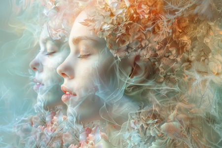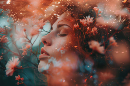 abstract portrait of woman and nature, realistic illustration