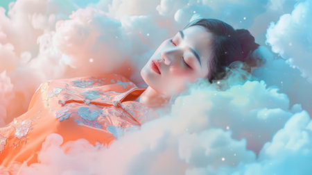 Chinese woman sleeping on a cloud, generative ai