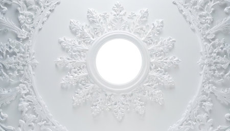 White ceiling with a circular window in the shape of a snowflake