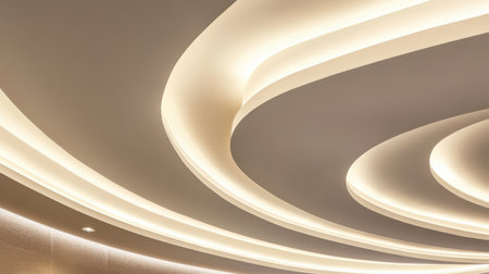 This image captures a modern ceiling design with gently curved light fixtures that create a warm ambiance, perfect for enhancing contemporary interiors in various settings.