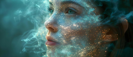 Cosmic Energy Flow, Woman With Glowing Particles, Fantasy Portrait, Stardust magic power