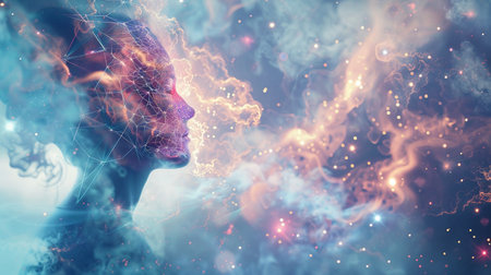 Ethereal double exposure smoke and nebula creating a cosmic portrait