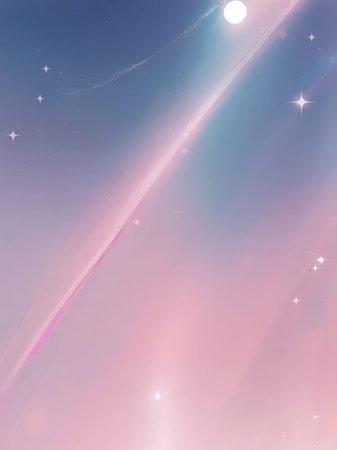 Artistic portrait against a dreamy gradient background blending from soft pink to lavender.