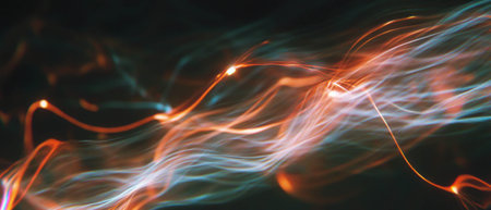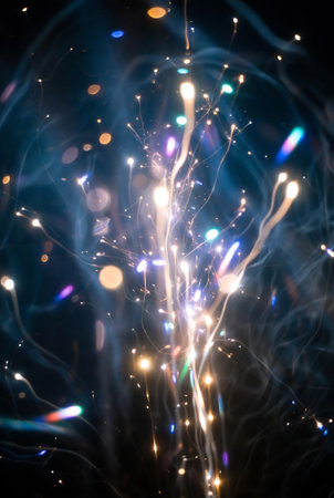 Dynamic interaction of light streaks and particles creates mesmerizing abstract background art