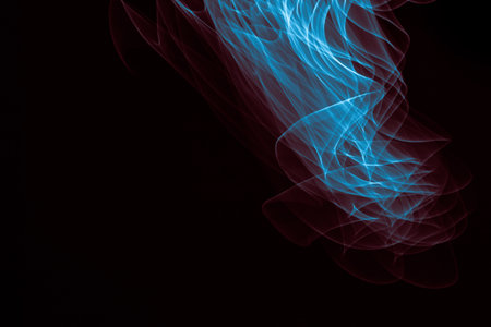 Light painted glowing abstract blue and red curved lines on a black background