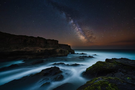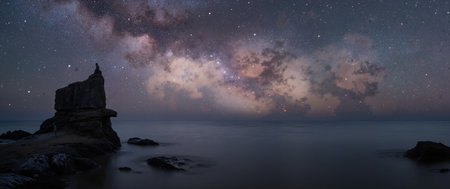 Milky Way over the sea. Long exposure photograph. Long exposure photograph.