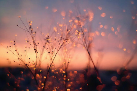 beautiful autumn or spring background. deadwood dill sunset bokeh blurred background. small depth of field