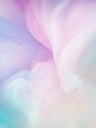 This artful image features an abstract painting with delicate pastel shades of pink, purple, peach, and teal, blended harmoniously in a gentle, ethereal style.